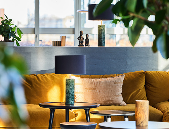 Lampenes utforming og materialvalg gjør seg godt til moderne boliginnredning. Både den lyse, naturlige nordiske stil, den dype, mettet fargesetting og