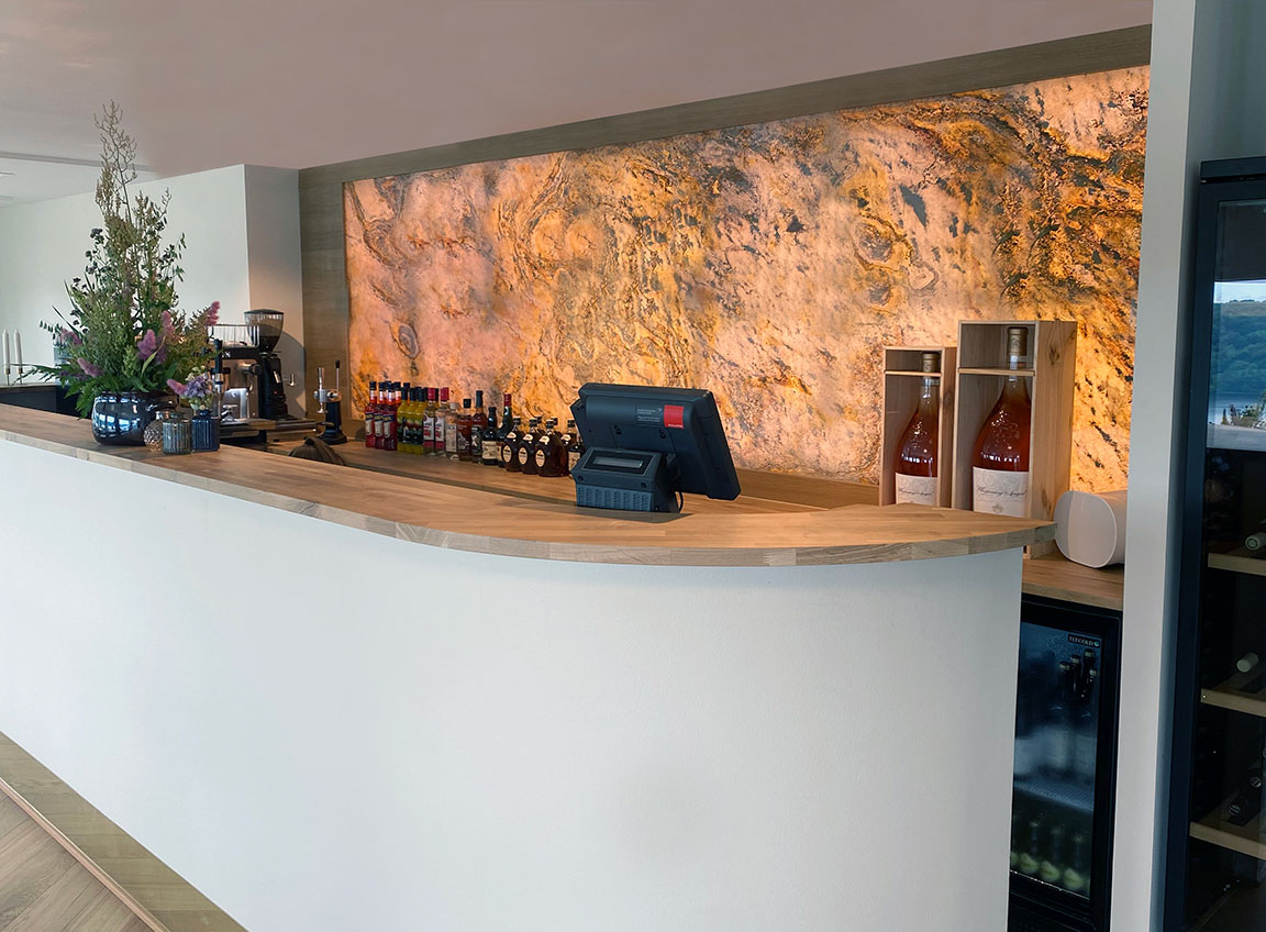 Skiferproduktet er en innovativ ekte steinfiner som består av et ultratynt lag naturstein og en bakside som er forsterket med glassfiber eller bomull.I tillegg til lampeskjermer i skifer, tilbyr vi også unike fasadeløsninger og veggdekorasjoner med og uten lys.Her trekker vi naturen rett inn i rommet.